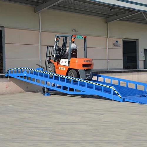 移动式液压登车桥是与叉车配合使用的货物装卸辅助设备,可根据汽车车厢的高低调节高度,叉车可以直接通过本设备驶入车厢内部进行货物的批量装卸,仅需单人作业,即可实现货物的快速装卸。它使企业减少大量劳力,提高工作效率,获取更大经济效益。